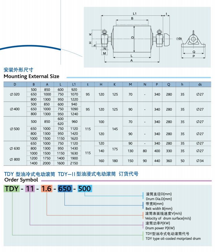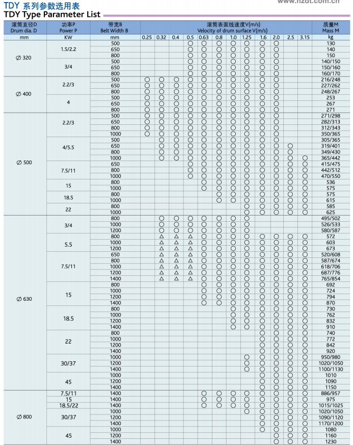 TDY型油冷式電動(dòng)滾筒是我國(guó)目前廣泛采用的普通型電動(dòng)滾筒。滾筒電機(jī)由專(zhuān)業(yè)的電動(dòng)滾筒電機(jī)廠配套,性能指標(biāo)不低于同功率的我國(guó)Y系列電機(jī)的指標(biāo)。為滿(mǎn)足用戶(hù)需求,本公司將繼續(xù)生產(chǎn)TDY型油冷滾筒。 |